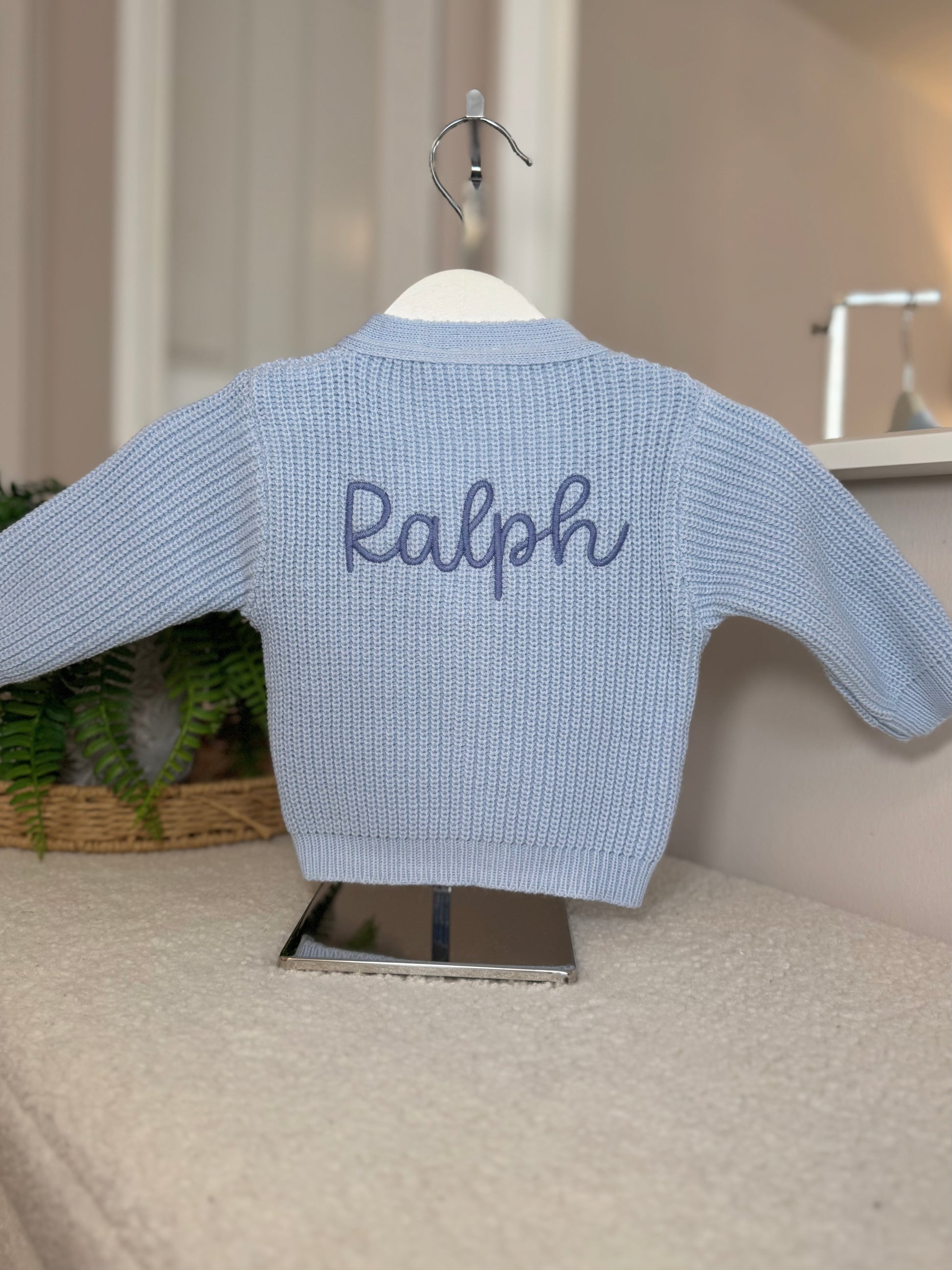 Our knitted baby cardigans are now personalised with delicate embroidery 🤍