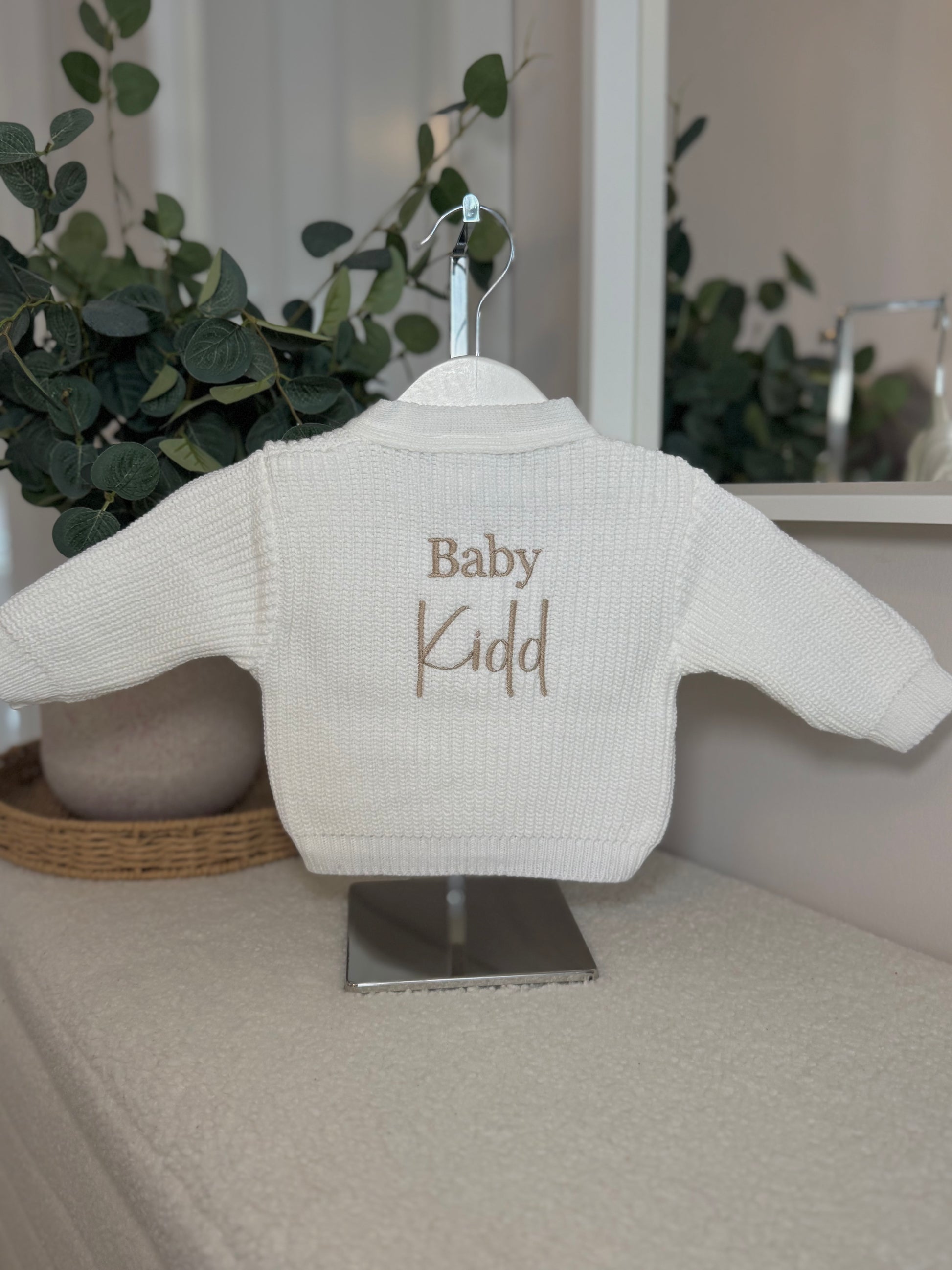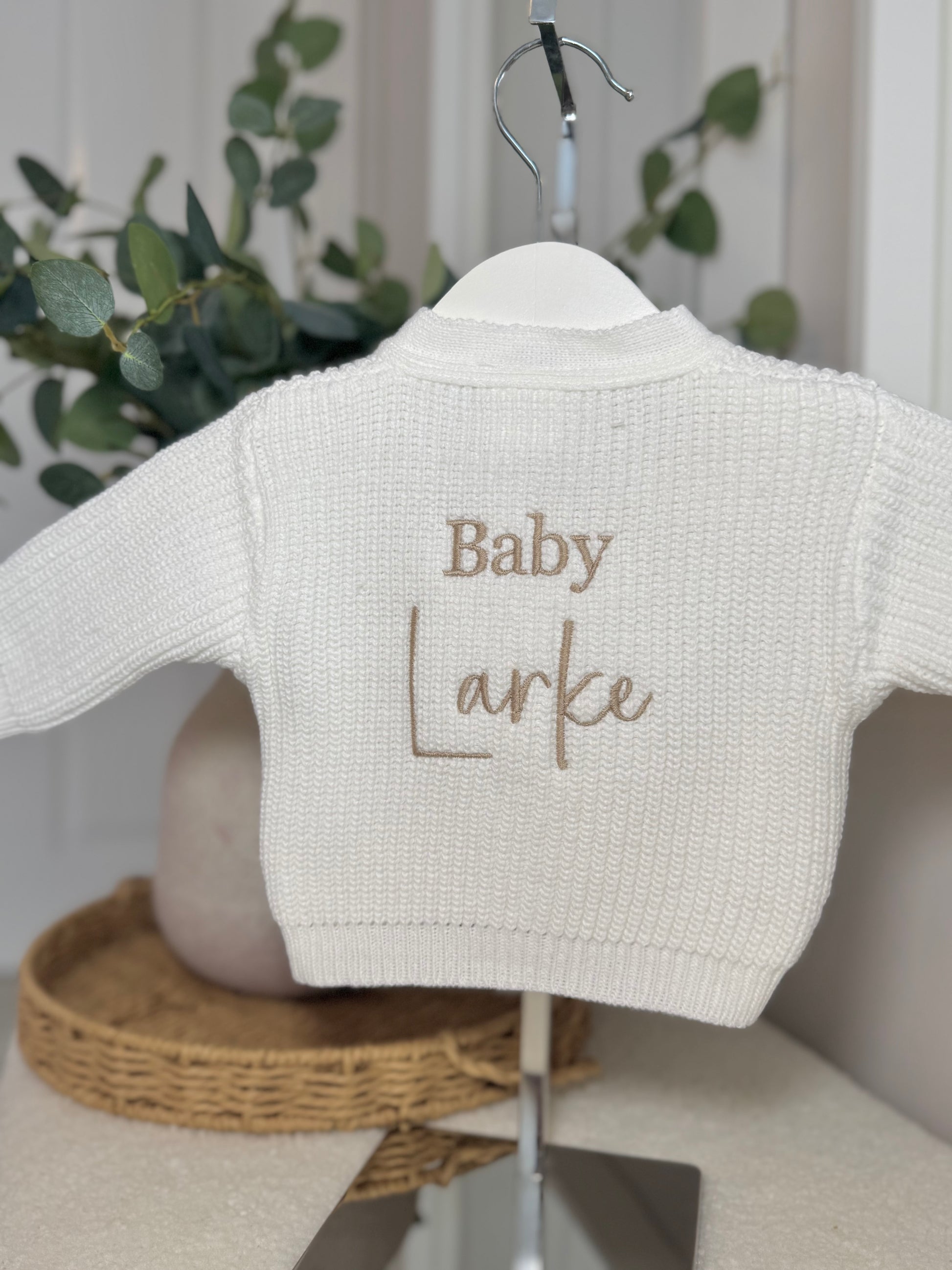 Our knitted baby cardigans are now personalised with delicate embroidery 🤍