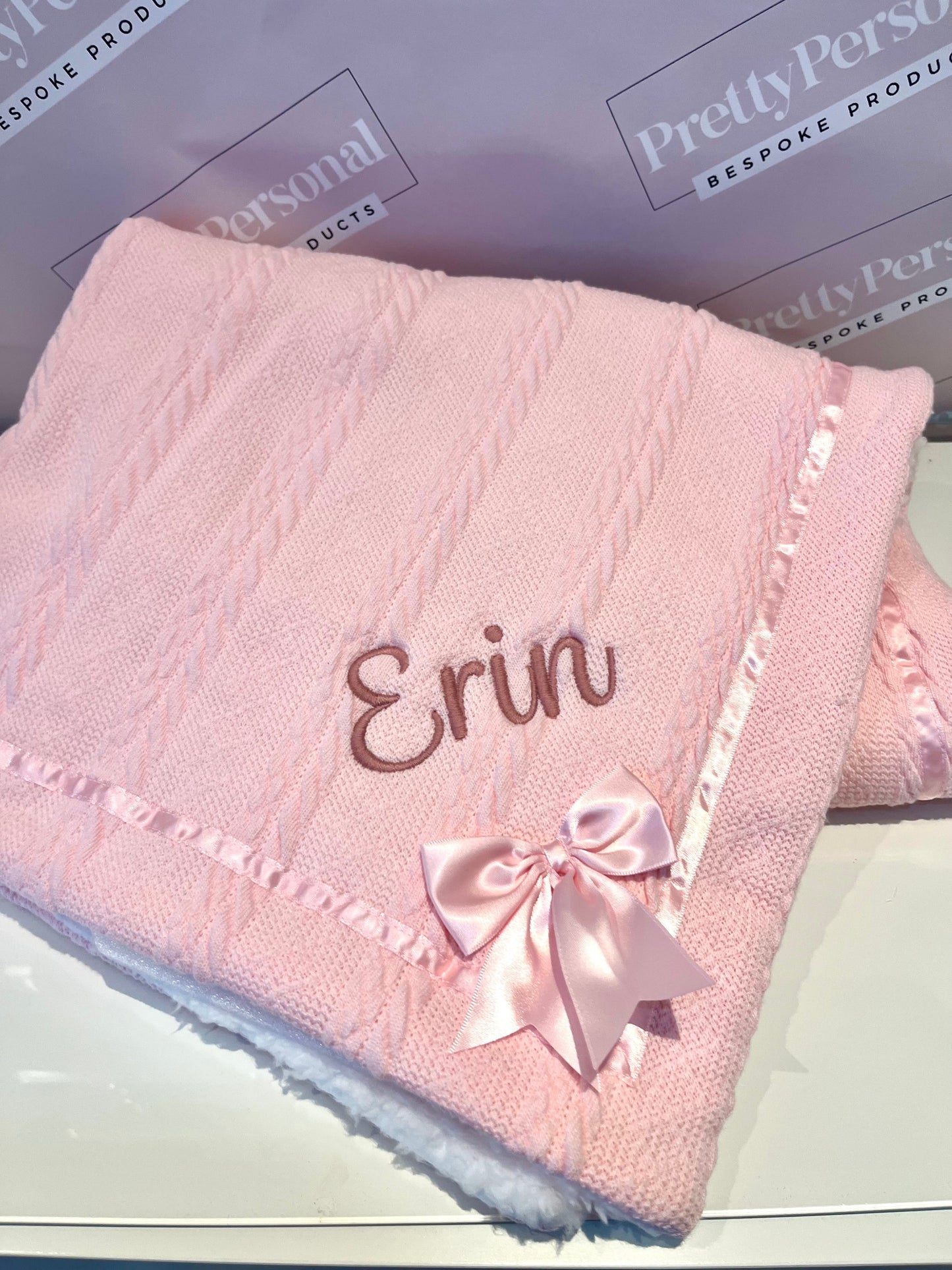 Sherpa Lined Chevron Knit Baby Blanket - Pink
