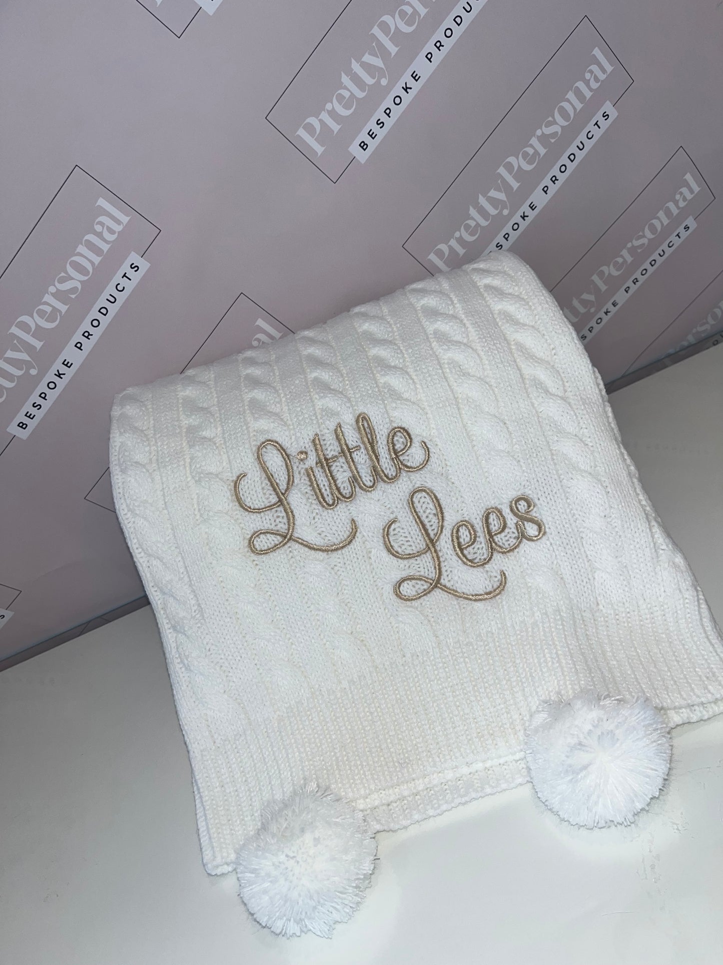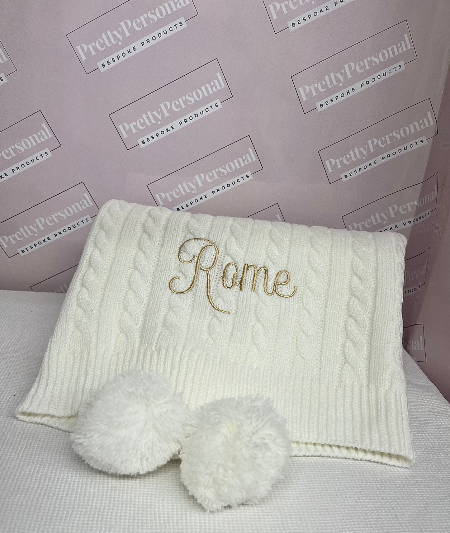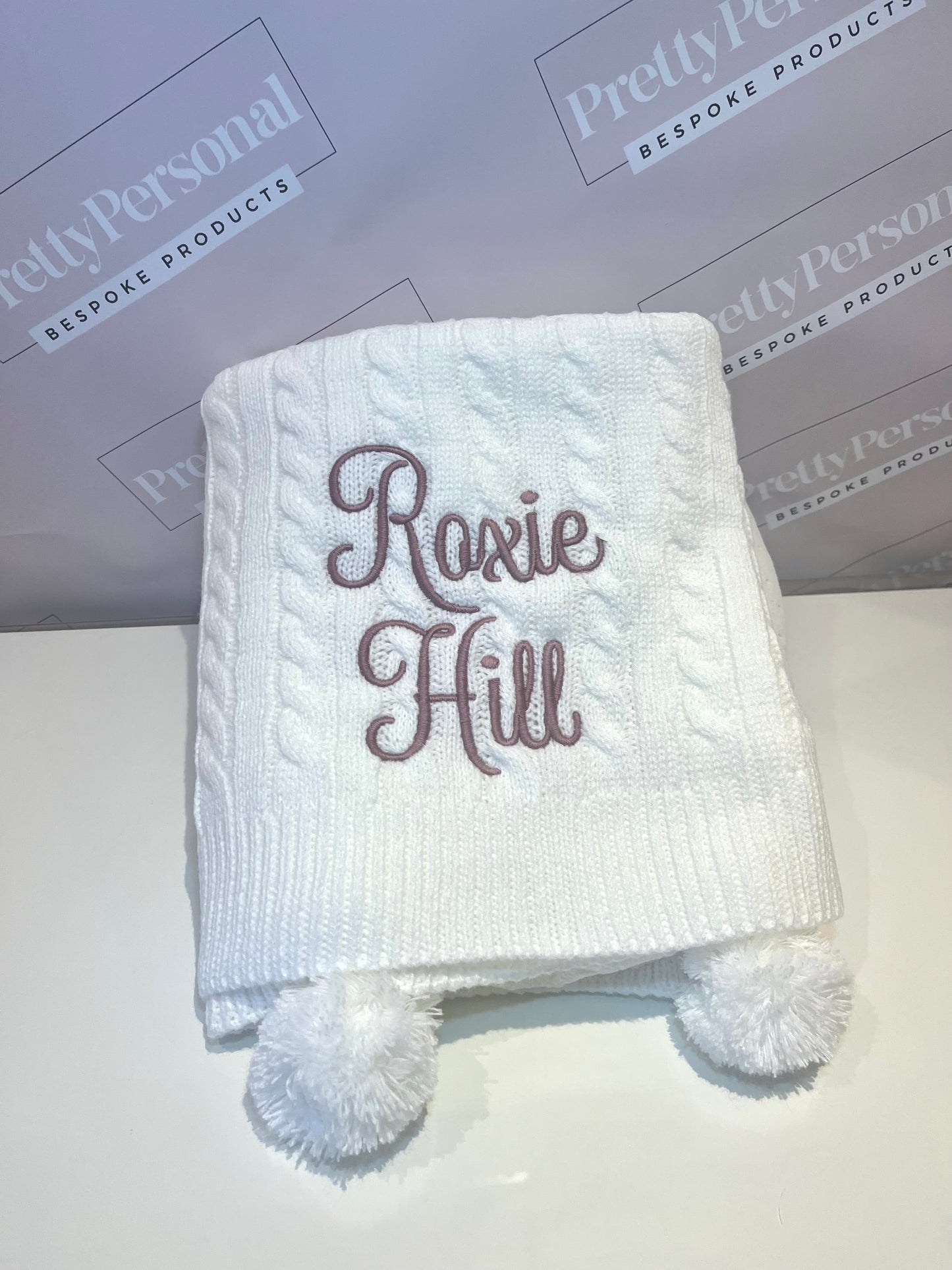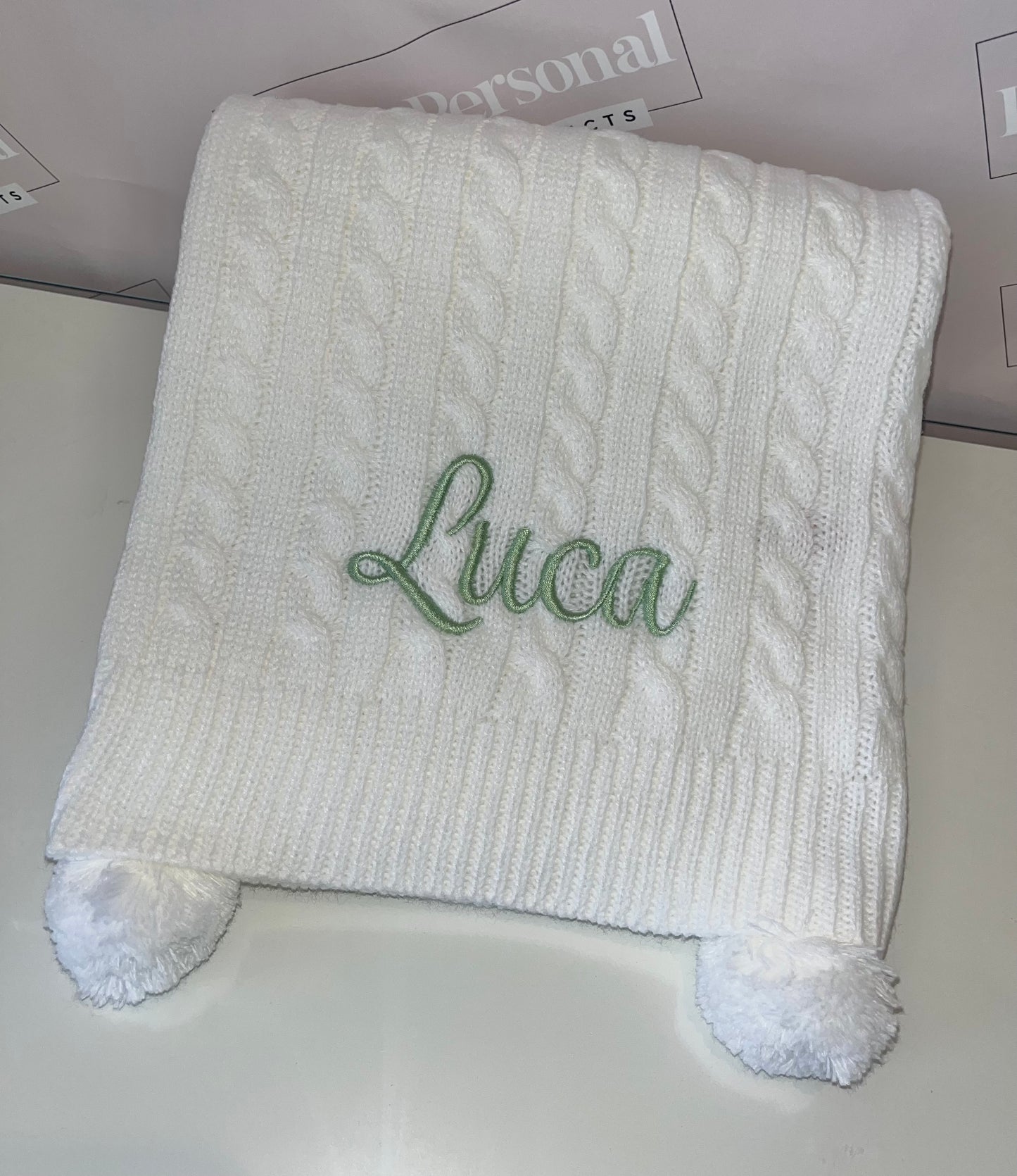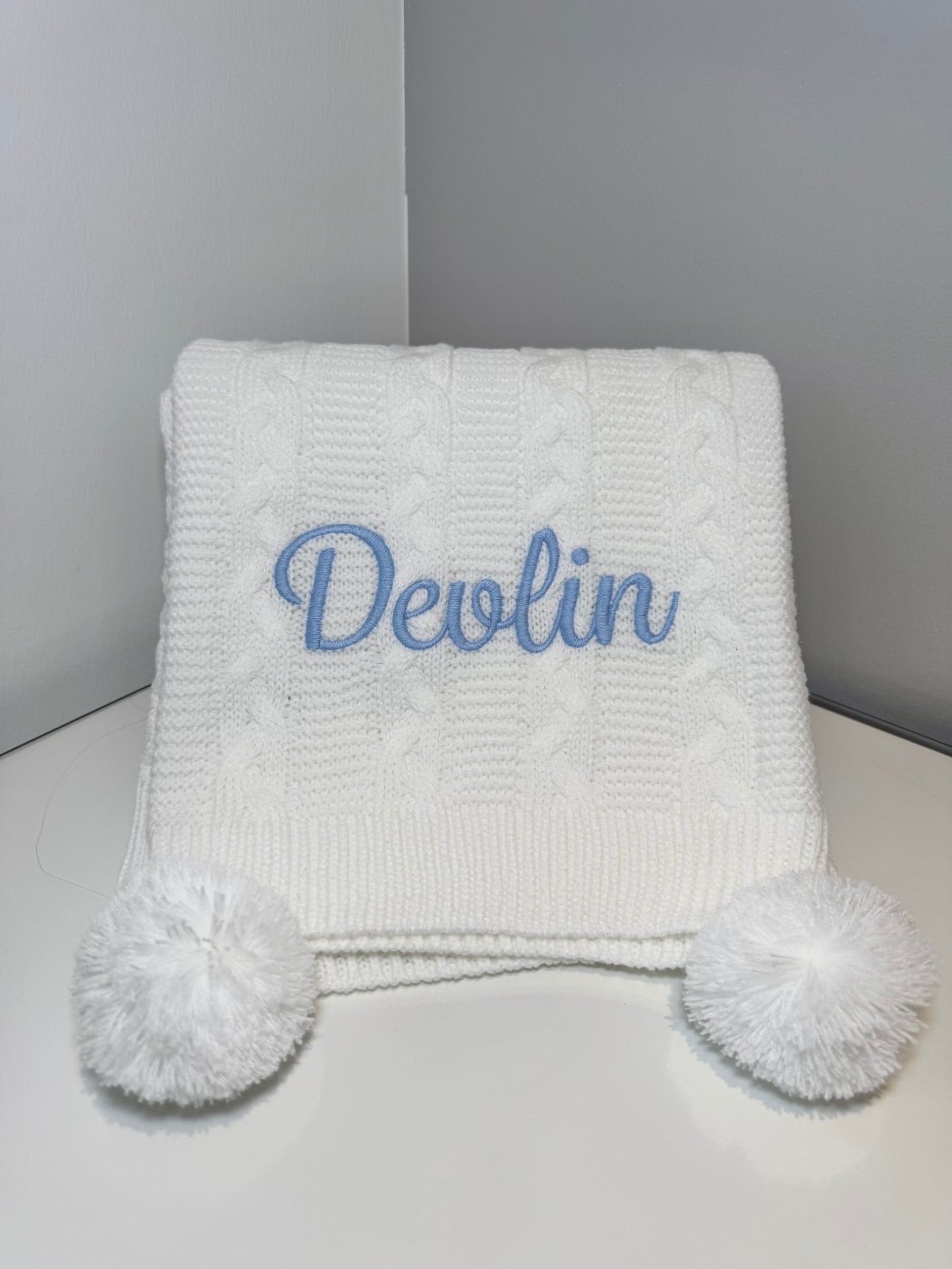 Introducing our luxury cable knit baby blanket, personalised for that extra special touch. This luxurious blanket comes in 6 stunning shades with matching poms and a complimenting thread colour. Super soft and perfect for the colder weather.