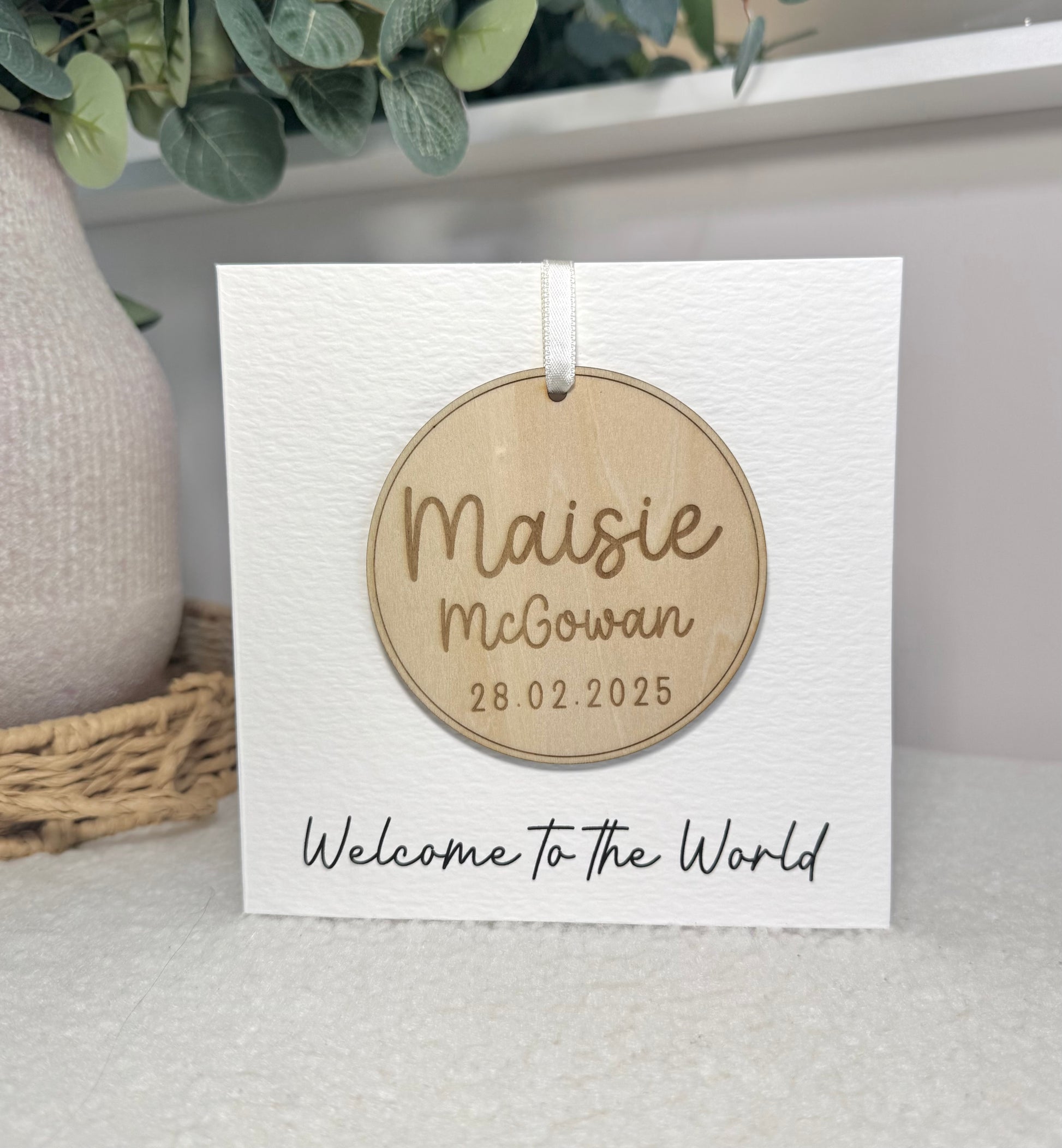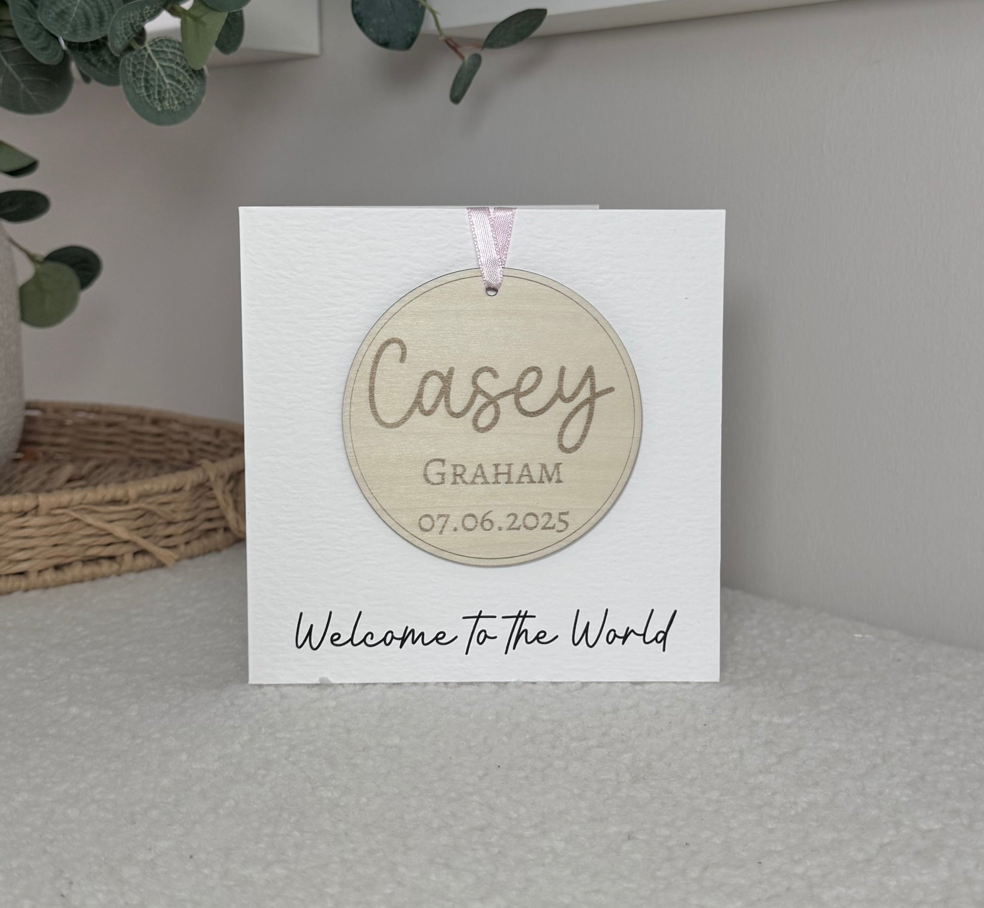 Celebrate the arrival of a precious little one with our beautifully designed Newborn Card, featuring a detachable wooden keepsake that will be cherished for years to come. This thoughtfully crafted card offers both a heartfelt message and a lasting memory. The elegant wooden keepsake, engraved with a sweet design, can be removed and kept as a treasured memento to commemorate this special occasion.