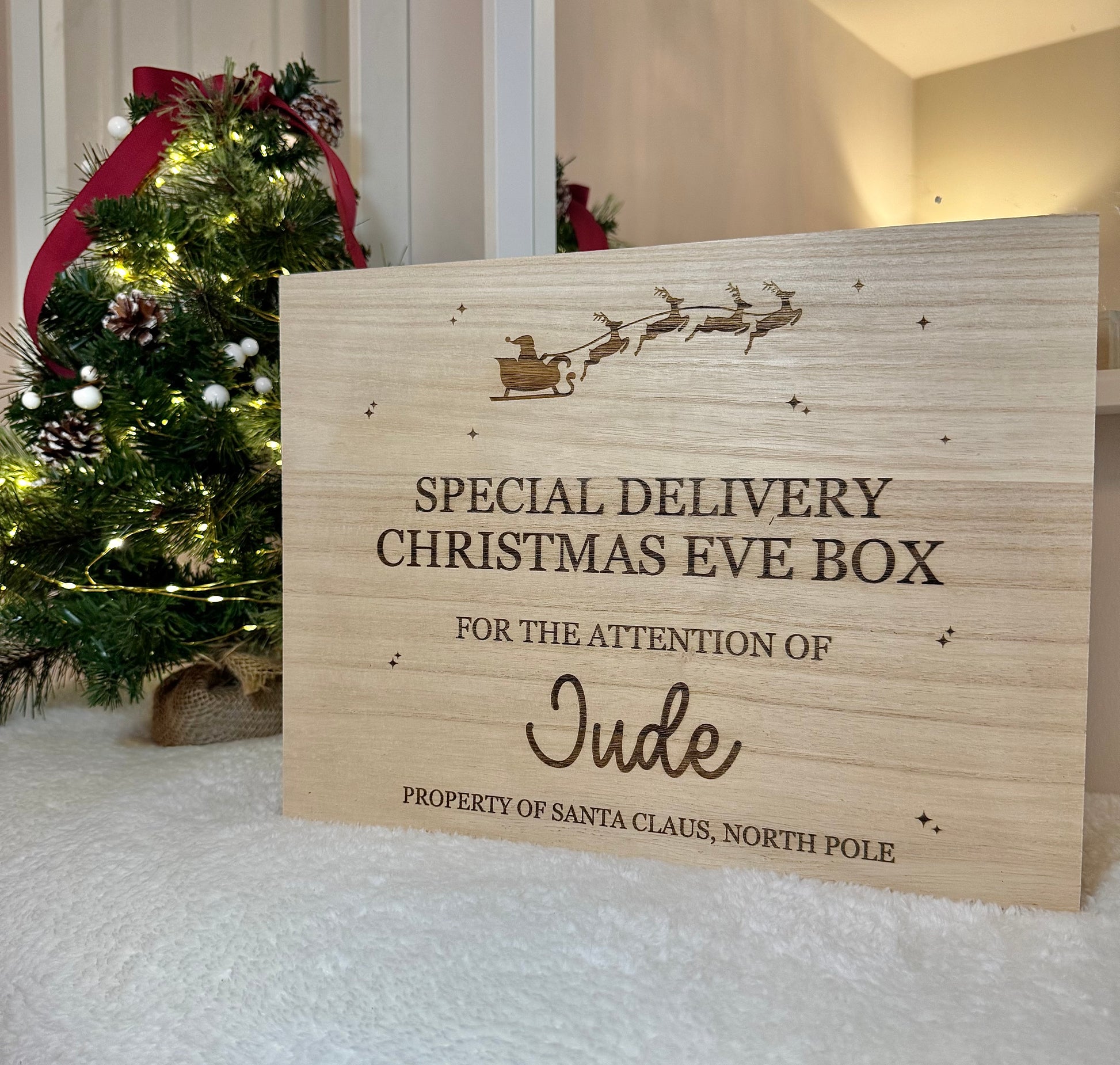 🎄 Wooden Christmas Eve Box – Laser Engraved 🎁